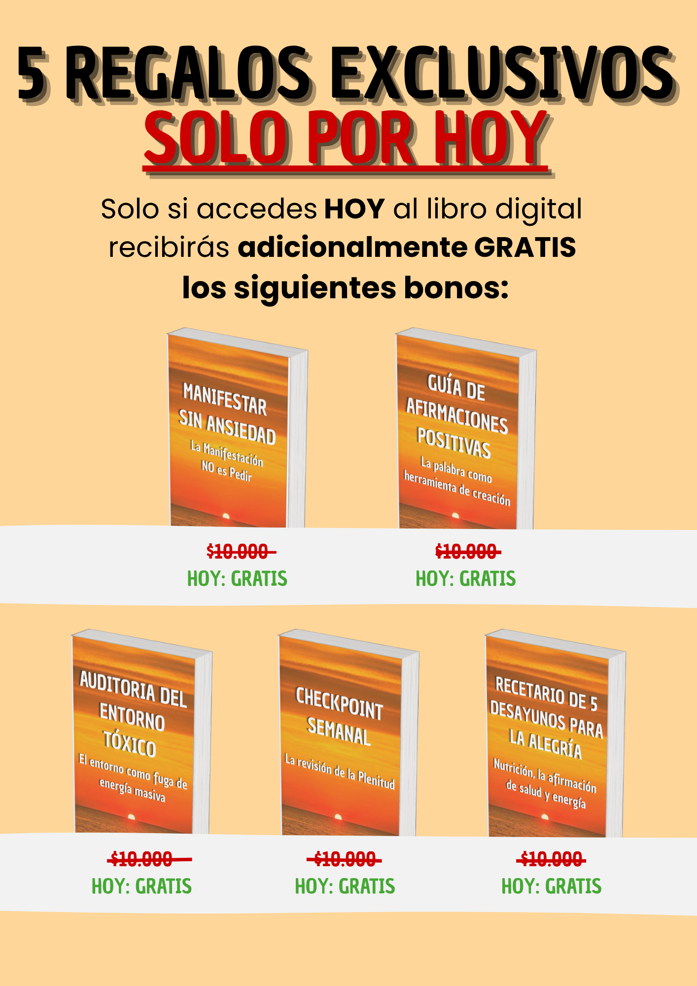 Absolutamente. La inversión única que haces hoy incluye el ebook principal "Hábitos de Felicidad" más los 5 Bonos Exclusivos listos para descargar y aplicar de inmediato. No hay membresías mensuales ni costos ocultos. Es una inversión única en tu paz y tu abundancia mental.