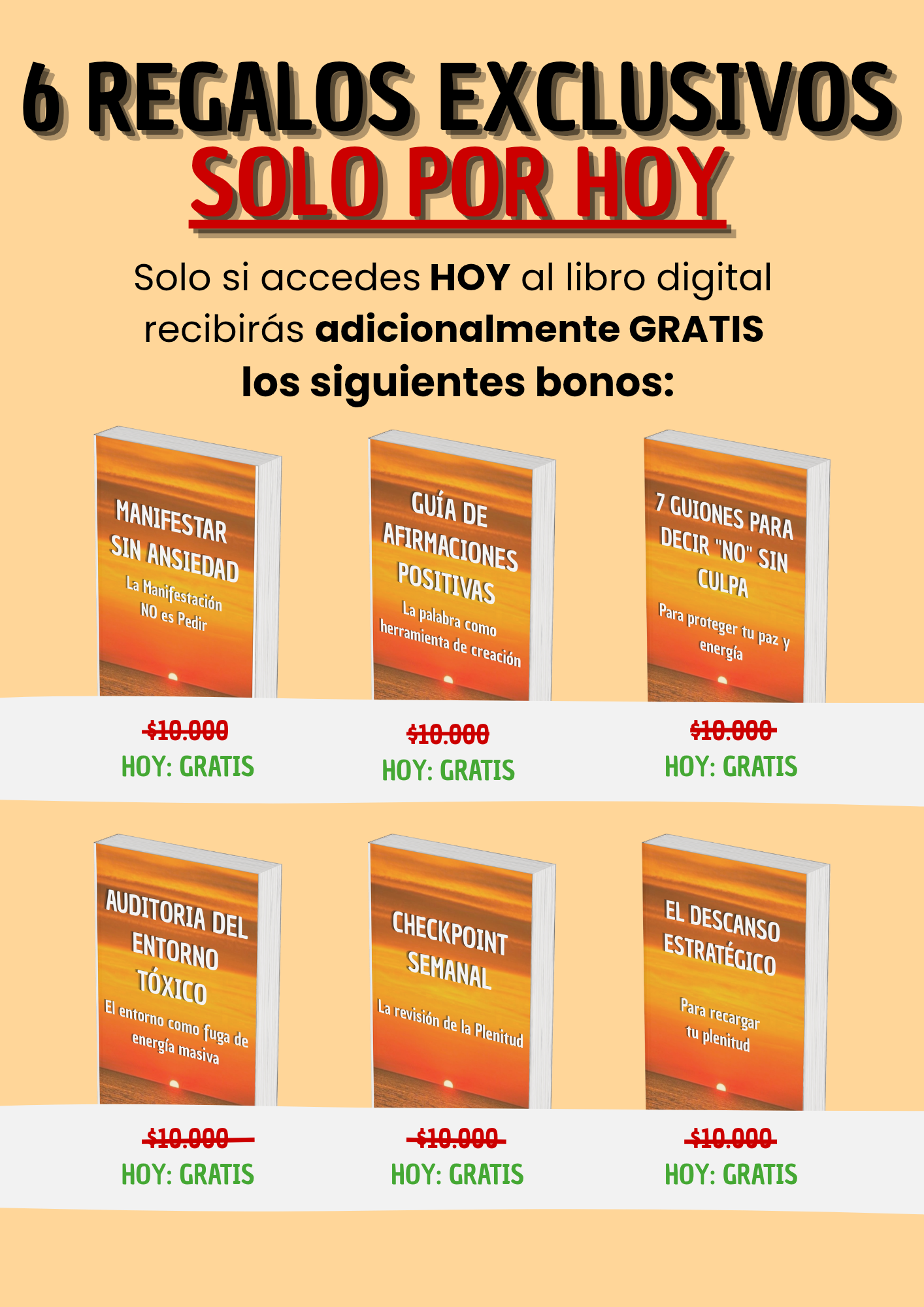 Entendemos que el entorno es un desafío. Por eso, el ebook incluye la Auditoría de Entorno Tóxico (Bono 3) y el Módulo de Límites. Aprenderás a crear un escudo mental para proteger tu energía, estableciendo límites claros sin confrontación y asegurando que la energía externa no contamine tu nueva mentalidad.
